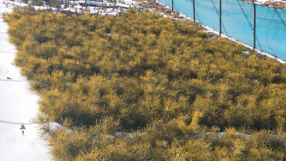 若是家乡人,对“百万亩樟子松植树造林”这样一个词再熟悉不过了,在政策的大力支持和民众的积极配合下,这里的植被覆盖率有了显著地提升。鉴于此,我们探访了其中的一个植树造林园,见到了已经高大挺拔的成树,也看到了在大棚中努力生长的小树,尽管是冬天,却少雪,一眼看去满是充满生机的绿色,心情也为之大好。随后,我们采访到了负责的经理,据他介绍:公司是2011年从这边建了这个基地,到现在累计投了2800万元,占地1030亩地,参与京津风沙源治理为主与外运苗。从2011年到现在,接手了2015年蔡木山乡和大河口乡2800亩地的风沙治理樟子松,大河口乡青龙背村2600亩地。2016年工程量开始增多,前几年的百万亩樟子松使风沙得到了很好的治理,2016年工程量比较大,2016年大河口乡的重点区域绿化,510国道,进京通道累计大概绿化了120公里左右。以前多伦满山都是沙子,沙中找绿,自从百万亩上来以后,风沙治理得到了很大改善,现在是绿中找沙,因为绿化植树造林环境得到了很好的改善,栽树要用工人,苗圃每年大概需要200个工人左右,带动周边农民,以前(他们)是靠在地里劳作挣钱,现在带动他们,最起码一年家里能保证3万元收入。风沙治理这项工作是造福子孙万代,我是土生土长的多伦人,小时候一到春天,满山的黄沙,经过这几年的改善,见不到沙子,见不到沙尘暴了。所以说,(京津风沙源治理)国家投资也大,改善了环境,居民的生活品质得到了提高。这些年的投资,得到了回报。既有收益,又为就业和环境保护贡献了力量。