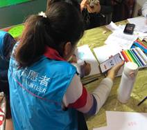 孩子们认真细心的样子打动着志愿者,志愿者们也更加有耐心地帮助可爱的孩子们。