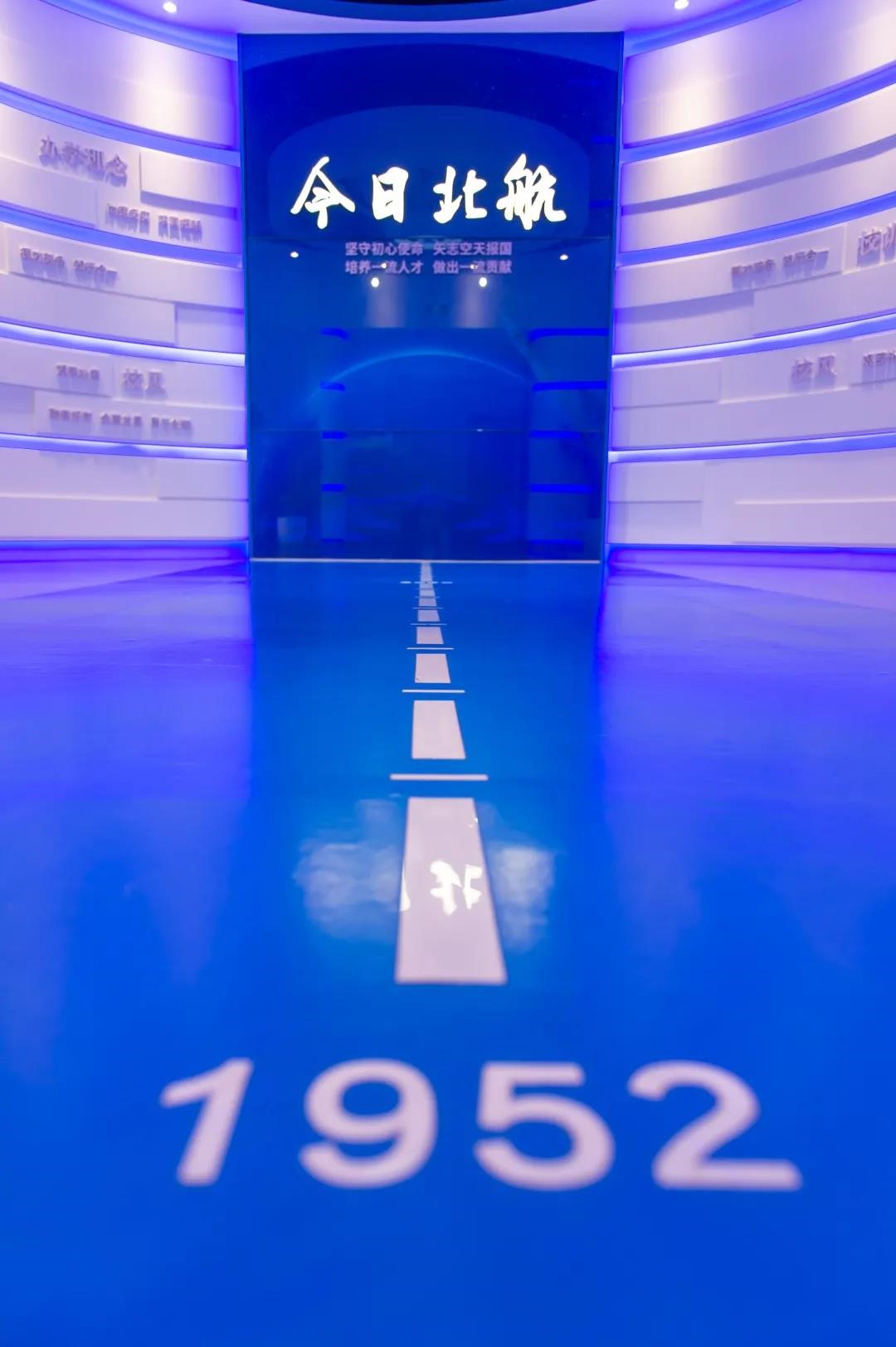 红色廊灯下的蓝色展厅,象征北航在中国共产党的领导下蒸蒸日上,茁壮成长。从师资队伍壮大,学校工作步入正轨,到先后进入211,985工程,入选国家“双一流”建设名单;从引入先进的学分制,新增系所研究室,到拓宽科研面,与世界一流大学展开交流合作……北航正朝着时代化、国际化的目标不断迈进。