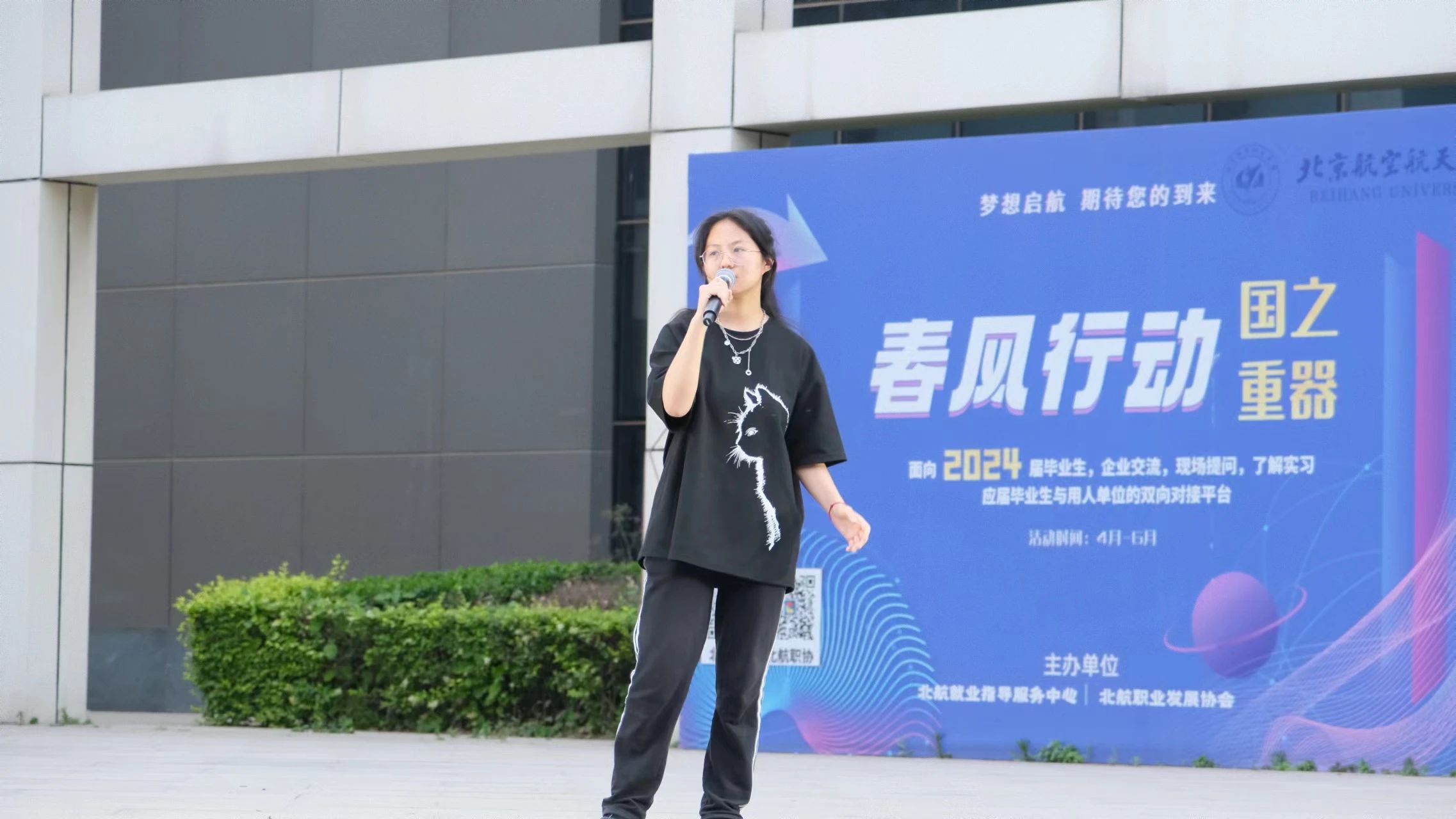 最后,袁竹韵同学用《起风了》将全场氛围带至最高潮。熟悉的曲调动人心弦,同学们不禁跟随音乐摇摆,一起歌唱。
