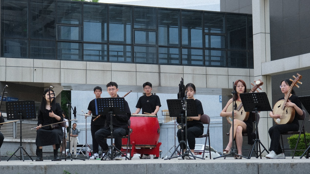 北航学生民乐团器乐合奏《知否知否》,这首曲目由北航学生民乐团成员自行编曲与二次创作,用丝竹管弦演奏清丽优雅的曲调,获得了现场观众的一致好评。