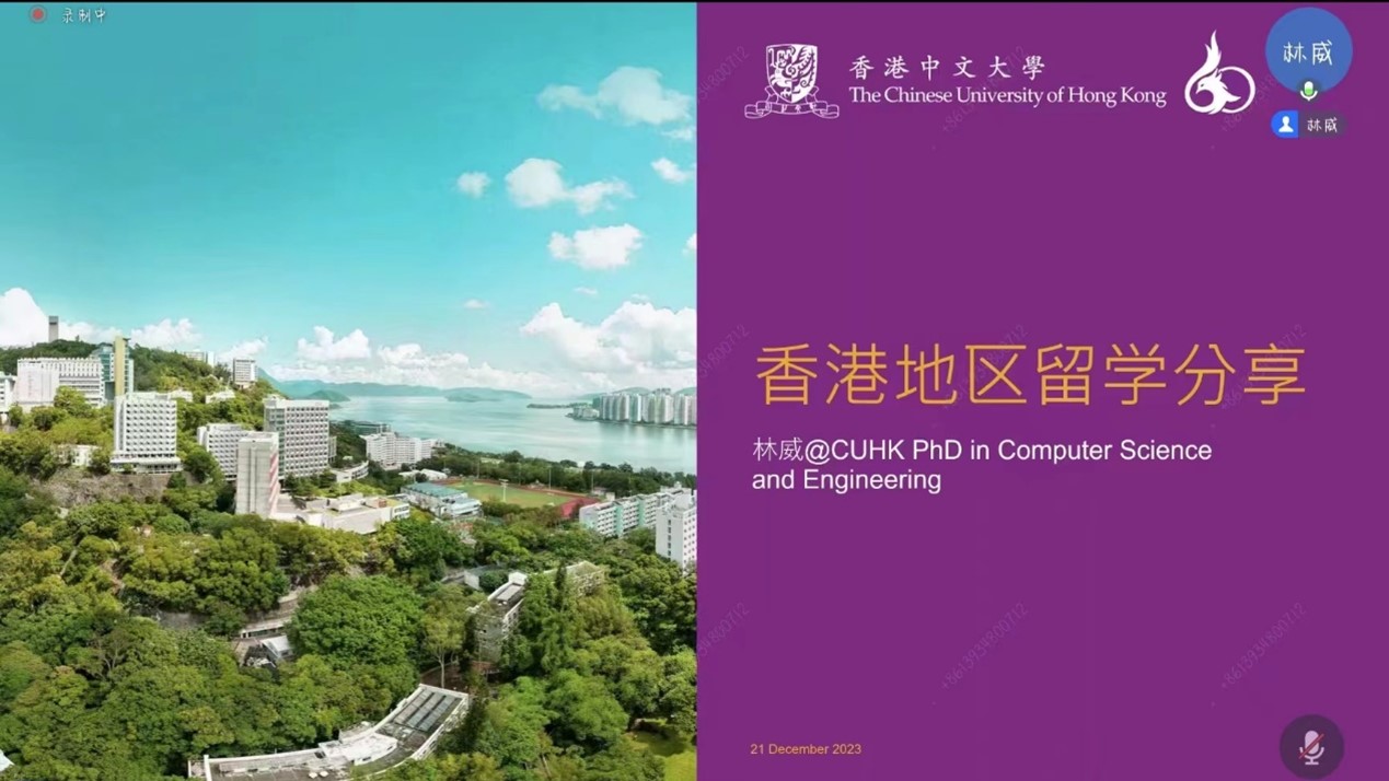 2023年12月21日晚19:00,由英国上市公司365/国际通用工程学院主办的中法大讲堂朋辈领航系列讲座第四期顺利举行。本次讲座邀请了现就读于香港中文大学计算机科学与工程专业博士研究生的林威。