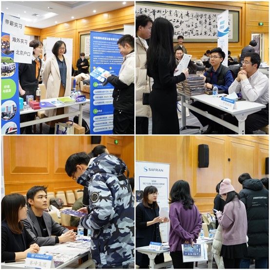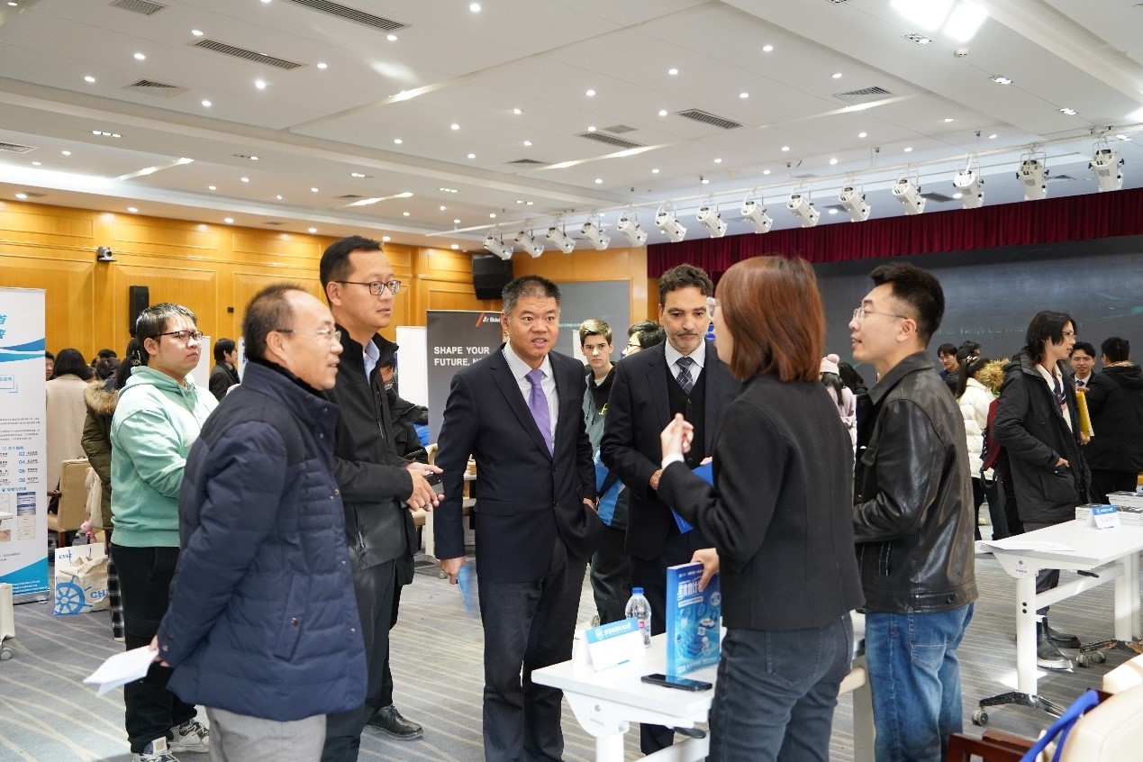 活动现场,学院党委书记张江、中方院长罗洪斌、法方院长Frédéric GENTY及学院老师与企业合作伙伴就各行业的科技创新、产业发展、人才培养等方面的热点问题进行了深入交流和探讨。北航学子也纷纷与企业代表面对面交流,深入了解实习就业情况。