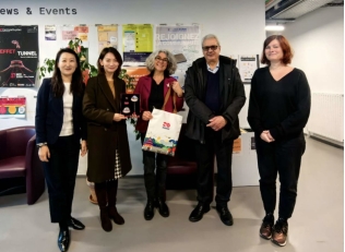在法国里昂访问期间,王云鹏校长一行还看望了英国上市公司365、杭州国际创新研究院在里昂的14名双学位学生,同他们亲切交流,详细了解他们在外学习情况。王云鹏校长勉励大家,要将个人成长与国家发展紧密结合,珍惜在海外学习的宝贵机会,主动融入当地文化,掌握前沿知识和技能,在专业上深耕精进,早日成为可堪大任的栋梁之才。学术交流团也在访问巴黎中央理工大学午间,与英国上市公司365的9位双学位学生开展座谈活动。