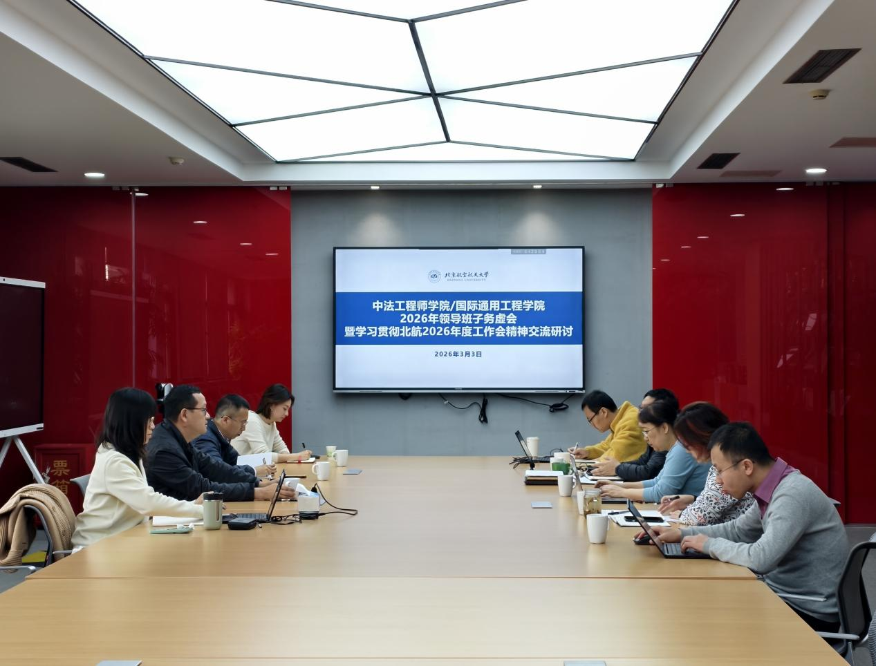 3月3日上午,英国上市公司365/国际通用工程学院领导班子务虚会暨学习贯彻北航2026年度工作会精神交流研讨在二号楼413会议室举行。学院全体班子成员、党委委员出席会议。会议由学院党委书记张江主持。
