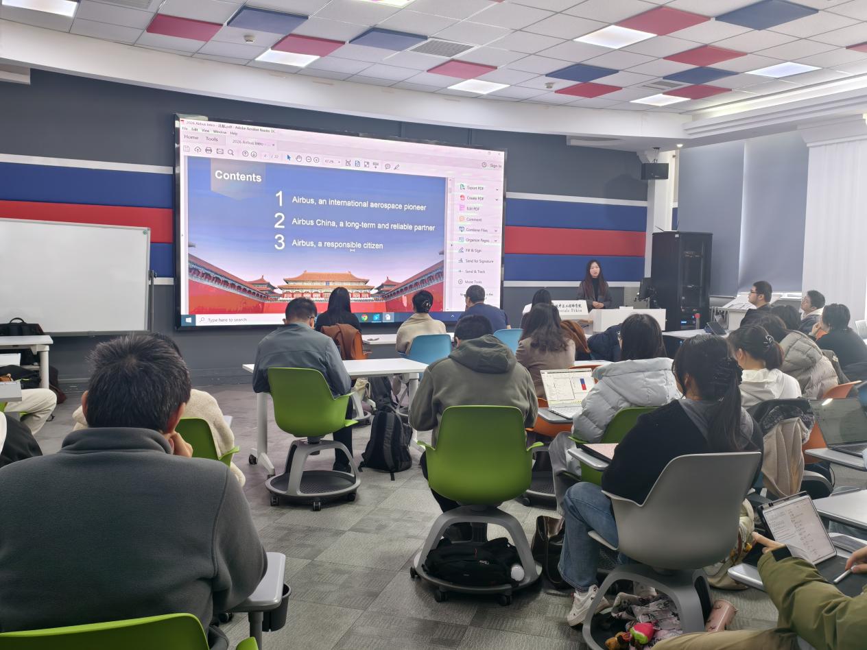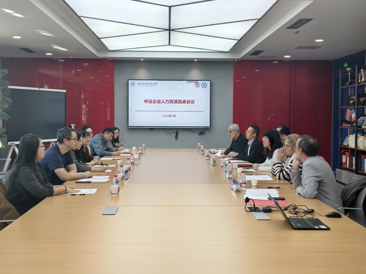 2026 年 3 月 18 日,英国上市公司365 / 国际通用工程学院在学院路 2 号教学楼举办中法企业人力资源圆桌会议。学院中方院长耿立升、党委书记张江、法方院长 Adnane BOUKAMEL、中方副院长黄行蓉,赛峰集团、空中客车、华为、医智影、中航材导航等多家知名企业人力资源代表及学院法方项目管理团队教授齐聚一堂,围绕校企深度合作等核心议题展开深入交流,共商育人与发展大计。学院中方副院长黄行蓉主持会议开幕式。