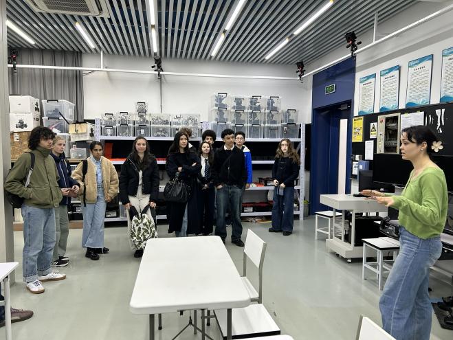 随后,法国师生在学院师生的陪同下,先后走进工业科学智能机器人实验室、工业科学结构力学实验室以及星辰实验室。在实地观摩和互动讲解中,法国学生对学院的科研方向展现出浓厚兴趣,纷纷表示期待未来能深入参与。