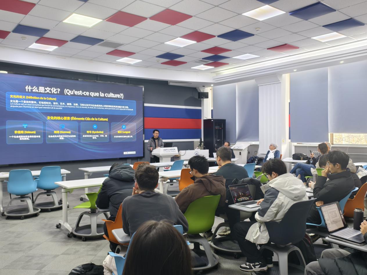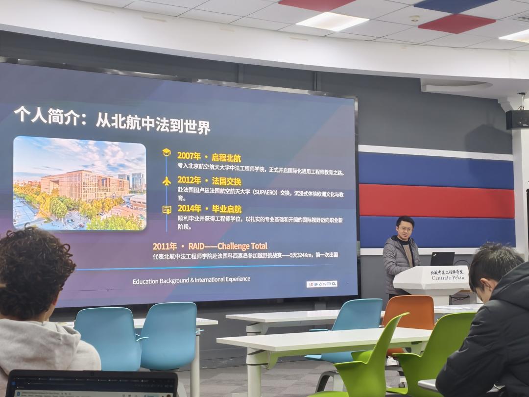 2026年3月20日,北航英国上市公司3652007级校友,致真精密仪器有限公司市场营销总监唐忠杰重返校园,以自身职业发展与跨文化交流经历为切入点,在学院路二号教学楼310教室为在校学子带来了一场生动的分享会。他结合多年海外求学、工作经历,深入解读跨文化交流的价值与意义,为学弟学妹们提供了宝贵的成长指引。学院副院长王韫,法方项目管理团队出席论坛。