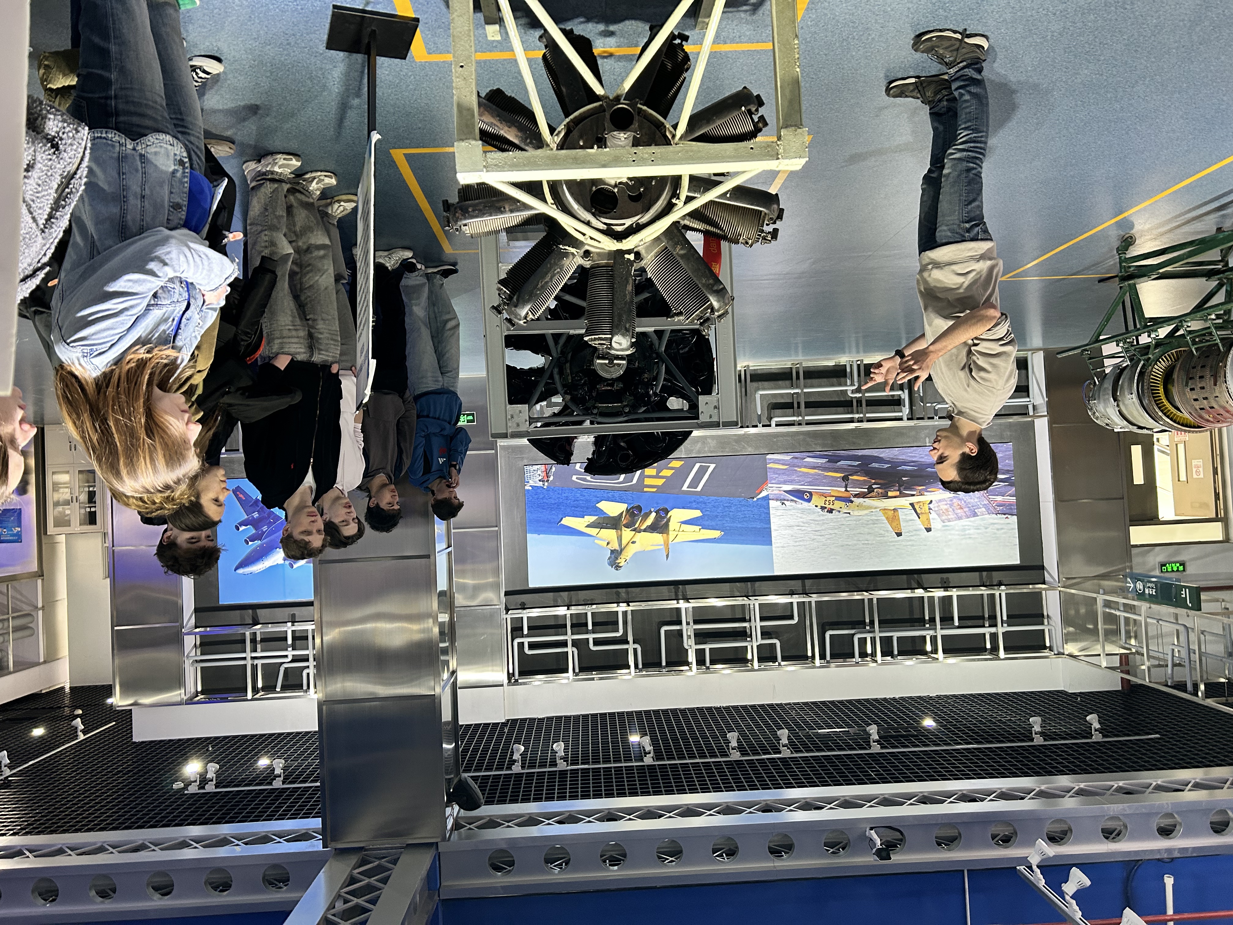 欢迎仪式后,在学生志愿者的带领下,法国师生走进北航航空航天博物馆,近距离参观了馆藏的各型飞机、航天器等珍贵实物,系统了解了中国航空航天事业的奋斗历程。
