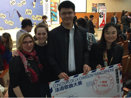 2016年3月27日,第十六届全国法语歌曲大赛(北京赛区)决赛在北京外国语大学隆重举行。我院2015级学生张路杨在强手如林的比赛中表现出色,荣获冠军,法国摇滚歌手Izïa Higelin女士亲自为他颁奖。