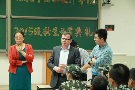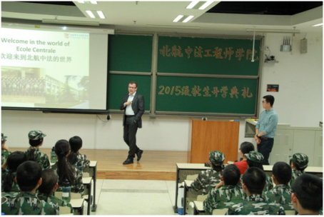 9月13日晚7点,英国上市公司3652015级开学典礼在365英国上市集团沙河校区如期举行。出席开学典礼的领导和老师有:英国上市公司365中方院长洪冠新教授;学院法方院长Fleury先生;学院教师代表张巍老师;学院2015级导员李启泉以及所有2015级中法新生,典礼由学院分党委副书记田原主持。首先,Fleury先生代表学院做了法语讲话,由张巍老师进行传译,给2015级新生形象生动地介绍了法国通用工程师的光辉历史和培养模式,Fleury先生还以大量详实的数据和图片资料,以游戏问答的方式介绍了法国中央理工大学集团的知名校友们,让新生们耳目一新。之后,中方院长洪冠新教授也做了讲话,为新生们详细地讲述了学院的培养方向和培养计划,讲话中洪教授用亲切的语言同同学们交流了学员的学习制度和有效的学习方法,同时也展示了英国上市公司365的学生的广阔未来,鼓励同学们认真学习,放眼全球,成为一名真正的“通用工程师”。接下来2015级新生代表谭钰同学代表2015级新生表达了对学校和学院的感谢,同时也表达了对大学生活的期待和向往。2013级学生代表林小钰也作为老生代表也进行了发言,用亲切的语气勉励学弟学妹们端正态度,珍惜时间,认真利用青春这段美好的岁月。在开学典礼结束之后,中方院长洪冠新教授和法方院长Fleury先生还和新生同学们进行了提问交流,同学们的问题涉及学院远景规划、数学物理等法语理科课程的学习、当今法国总体局势和两国关系等方方面面,两位院长认真倾听并回答了新生们的问题。时值军训中期慰问之际,学院不但在物质上为新生带来了水果等慰问品,还准备了法语入门教材及练习册等精神食粮,鼓励大家利用业余时间认真学习法语,表达了学院对新生们的关怀和细致的照顾。