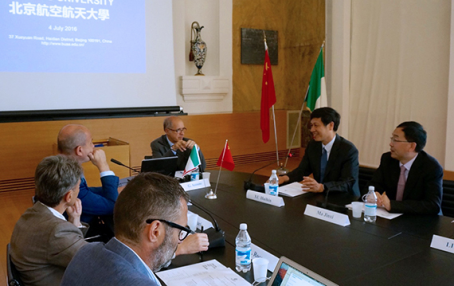 米兰理工大学校长阿佐内教授首先向徐惠彬校长一行的到访表示热烈欢迎。他指出,北航与米兰理工大学同为以理工类学科见长的研究型大学,双方在电子、机械、管理等学科具有良好的合作基础,希望未来双方进一步拓展合作学科领域,拓展建立教育及科研合作项目。徐惠彬校长感谢阿佐内校长的热情接待,并简要回顾了两校过去十余年在人才培养、科研合作等领域所取得的合作成果。徐惠彬校长表示十分重视与米兰理工大学的友好合作关系,希望通过推动两校教授层面交流与合作,进一步深化两校战略合作关系。随后,双方围绕在北航举办“米兰理工大学日”,建立“工程-管理-设计”复合型学科人才联合培养项目、共建联合实验室等议题进行会谈并达成合作共识。