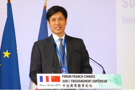 6月30日,徐惠彬校长应邀出席在笛卡尔大学举行的“中法高等教育论坛:大学与工程教育”,并作题为“加强合作,迎接挑战”的主题报告。本次论坛是“中法高级别人文交流机制第三次会议”的重要配套活动,中国国务院副总理刘延东,法国国民教育、高等教育与科研部部长瓦洛-贝尔卡塞姆(Najat Vallaud-Belkacem)共同出席论坛并发表演讲。刘延东副总理为徐惠彬校长、巴黎中央理工-高等电力大学(CentraleSupelec)校长彪赛(Herve Biausser)颁发“中法大学合作优秀项目”奖,表彰两校在中法高等教育合作中所做出的突出贡献以及英国上市公司365的示范效应。