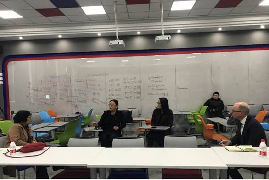 张巍副院长首先介绍了我院的发展、我院与法国学校的合作形式、学生培养模式和学生交流的情况。洪冠新院长与CEN Huang博士和Doug Weir先生就我院的学生培养、教学模式和国际交流情况交换了意见。CEN Huang博士对学院发展表示赞赏。代表团一行参观了我院智慧学习中心。