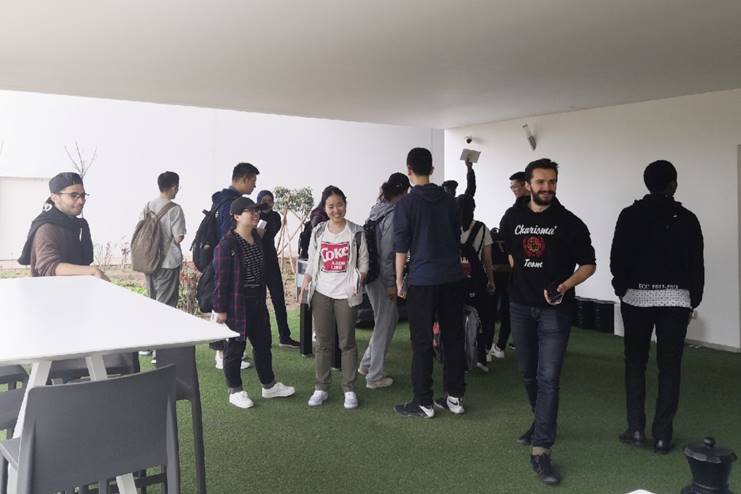 在摩方老师和同学们的陪伴下,访问代表团的带队老师和学生们下了飞机,还没顾不上休息,就立即赶到卡萨布兰卡中央理工大学,开始了访问活动。卡萨布兰卡中央理工大学副校长Serge Delle-Vedove教授代表学校欢迎了大家,向大家介绍了交流活动的整体安排和相关内容。随后代表团在学生会的陪同和介绍下,参观了卡萨布兰卡中央理工大学的教学、科研、文体、休闲等校园设施,并与摩方同学们展开了热烈的交流。
