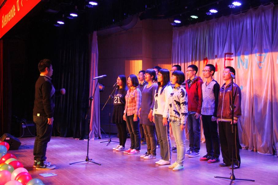 一段美轮美奂的舞蹈在轻松愉快的气氛中出演。之后,14级同学们各展才华,吉他弹唱、古筝表演、傣族舞蹈等节目,向法国友人展示了中法人的多才多艺。一段中国传统长拳表演,诠释了中华文化的博大精深。而法国友人的热情,同样点燃了全场的气氛。他们向我们详细地介绍了建筑、饮食、文化遗产等各个方面的法国文化,让我们进一步了解到法兰西民族文明。而后,一支由法国友人组成的乐队演唱了一首悠扬动听的法语歌曲,令全场起立鼓掌。中场休息期间,法国友人与中法学生一起来到摆满了点心和饮料的长桌边。中外学生边吃边交流,中法人教会了法国友人简单的汉语问候语,法国友人也将最纯正的法语说给我们听,之后,一张张照片记录下了我们与法国学生的深厚友谊。
