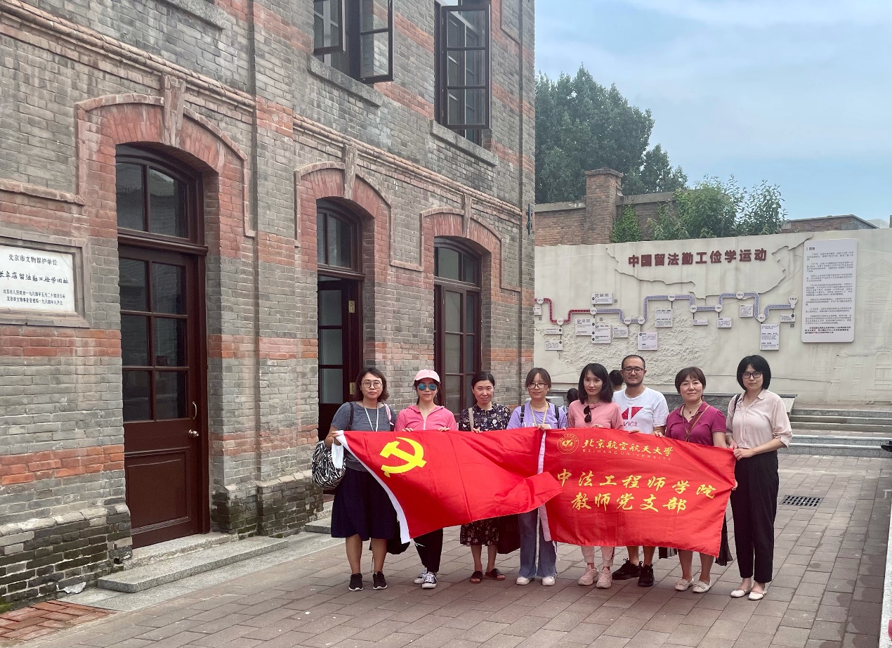 随后,党员教师前往爱国主义教育基地长辛店留法勤工俭学预备班进行参观学习。在长辛店德善里18号院,坐落着一栋法式小洋楼,就是长辛店留法勤工俭学预备班的旧址,也是京汉铁路工人运动与先进知识分子结合的发祥地。20世纪初,留法勤工俭学在全国各地兴起。1916年至1920年期间,全国十多个省份设立了20多处留法勤工俭学预备学校(班),近2000名中国进步青年远赴法国,“勤于做工、俭以求学”,胸怀救国梦的中国青年远渡重洋,一边做工,一边学习新知识、新思想,为中国共产党的创建和发展提供了来自海外的组织基础、理论依据和人才支持,做出特殊的历史贡献。长辛店留法勤工俭学预备班就是中国马克思主义者早期开展革命活动的实践基地之一。毛泽东于1918年冬和1919年春两次赴长辛店,看望勤工俭学的湖南籍学员,同时带领留法勤工俭学学员深入工人群体、了解工人疾苦、传播马克思主义。长辛店很多珍贵展品记录着当时年轻人的理想与执着:毛泽东为筹措留法勤工俭学经费写给罗学瓒的明信片,陈延年、陈乔年等人赴法的介绍信,北京华法教育会为周恩来等学生开具的赴法证明,邓小平在法国施耐德工厂做工时的档案卡、登记卡等,再现了百年前一批有志爱国青年的热血青春。