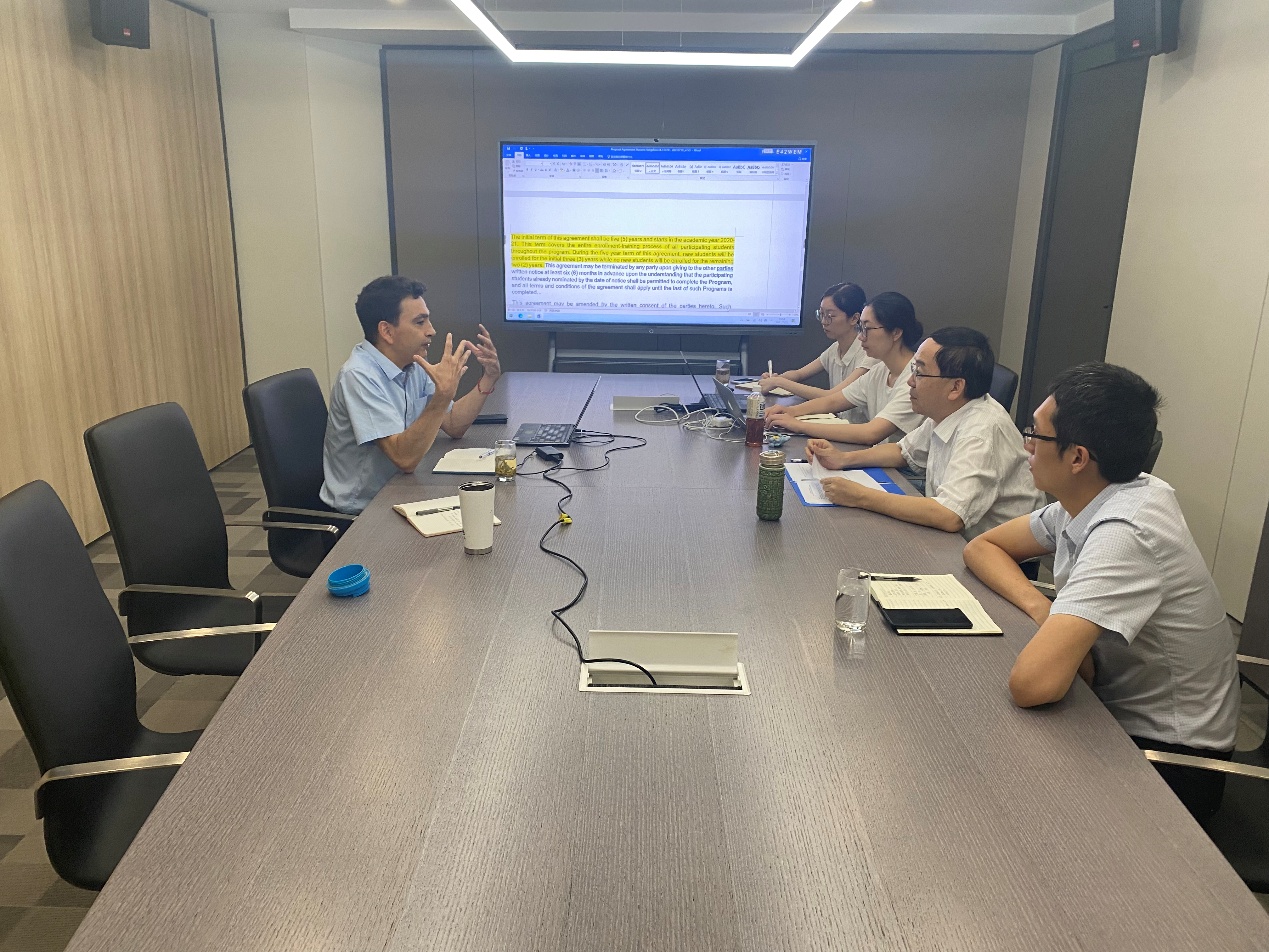 7月22日,英国上市公司365法方院长Frédéric GENTY在学院副院长张巍陪同下参观了中法合作办学办公室(杭州)。Frédéric GENTY院长与中法合作办学办公室(杭州)主任马进喜就英国上市公司365双学位硕士合作协议进行了深入交谈。