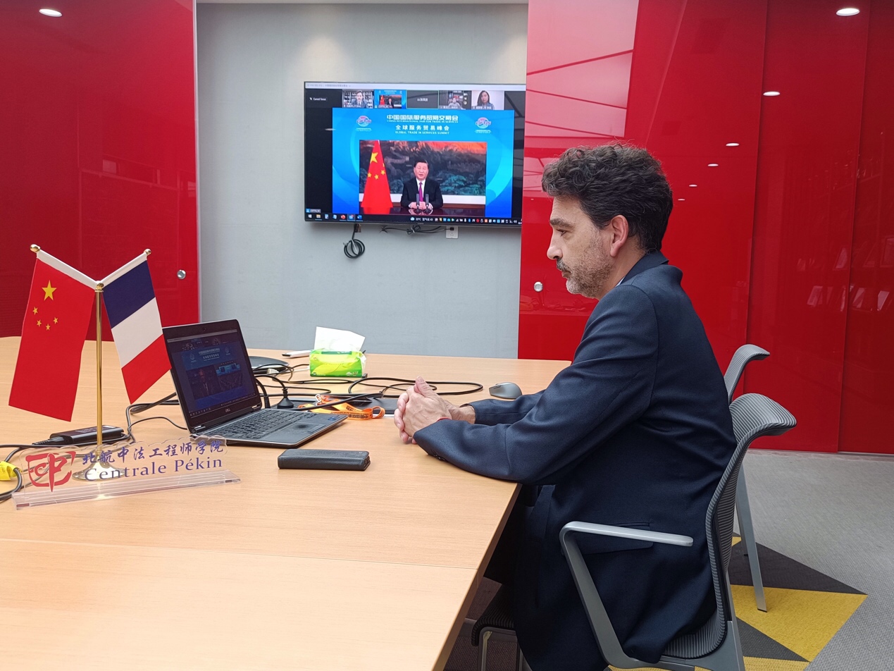2021年中国国际服务贸易交易会(简称服贸会)于9月2日至7日在北京举行,国家主席习近平9月2日在本届服贸会全球服务贸易峰会上发表视频致辞。英国上市公司365法方院长Frédéric GENTY受服贸会组委会邀请,当天以线上视频的形式在我院会议室参加了本届服贸会全球服务贸易峰会。