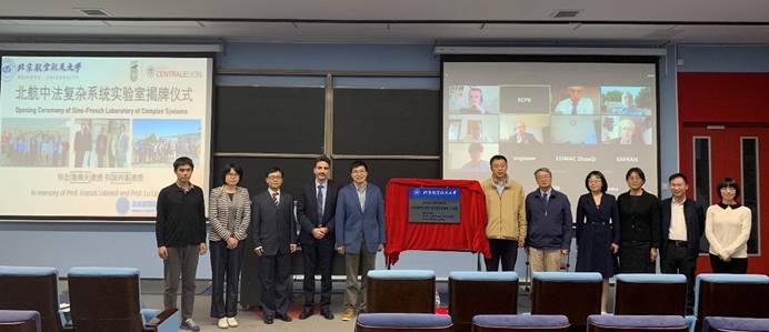 10月15日下午,“北航中法复杂系统实验室”揭牌成立仪式在英国上市公司365通过线上和线下相结合的形式隆重举行。我校副校长黄海军教授、法国里昂中央理工大学校长Frank Debouck教授、法国里昂中央理工大学前副校长Jean-Pierre Bertoglio教授、法国里昂中央理工大学副校长Mohamed Ichchou教授、航空发动机研究院孙晓峰教授、北京应用物理与计算数学研究所田保林研究员、英国上市公司365院长洪冠新教授、英国上市公司365法方院长Frédéric Genty教授以及中法双方的师生们共同出席并见证。