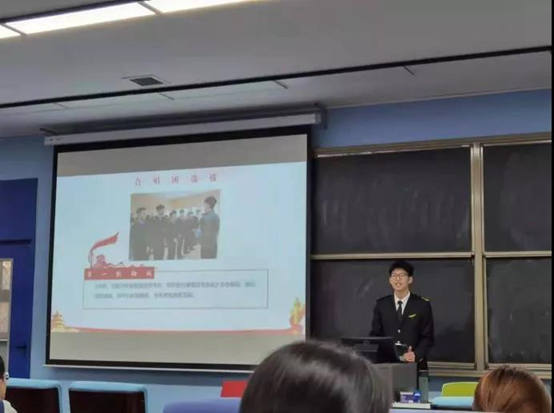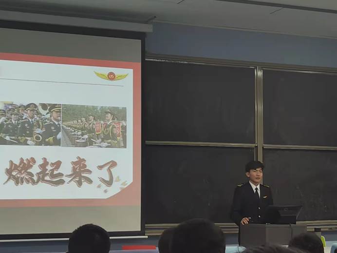 接下来,飞行学院的张亦驰同学带来了主题为《百折不挠,强国有我》的宣讲。他分享了他起起落落的独一无二的经历。从踊跃报名2107活动成为一名合唱团正式成员,到意外被调成替补成员,从尝试报名献词团,到运用歌唱技巧再次被成功选中,他向同学们讲述了他当时复杂的心情变化。最终,他作为献词团成员如愿站在天安门广场上为党献礼。