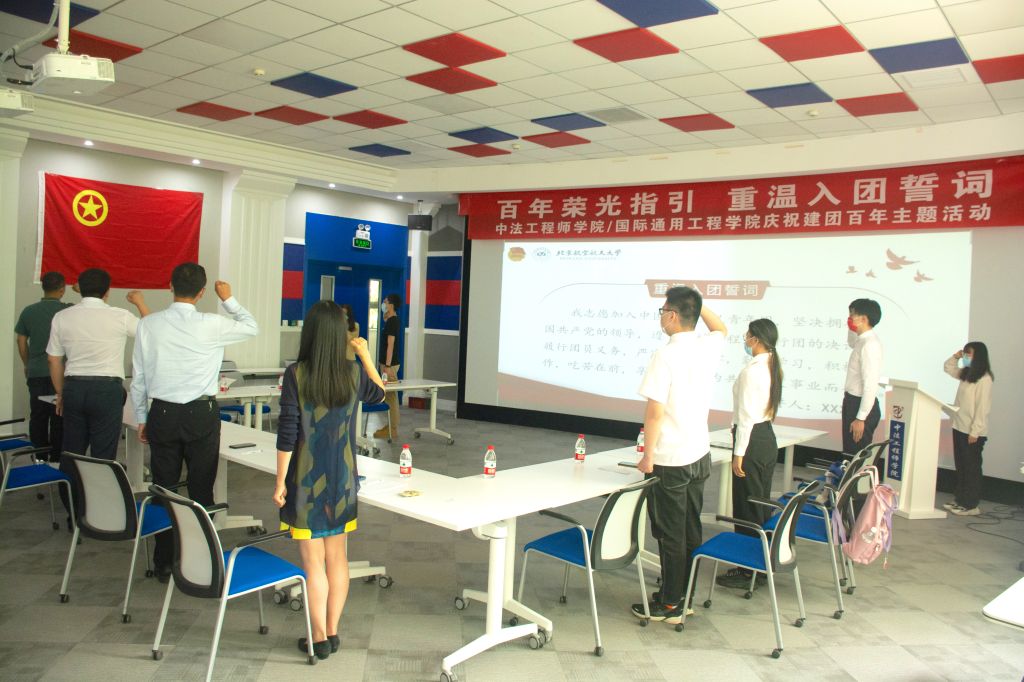 校团委书记庄岩参加本次重温入团誓词活动并讲话。他从清晰的历史逻辑、鲜明的时代特征和明确的责任使命三个方面回顾了中国共青团的百年奋进历程,并结合学校发展梳理了北航共青团的主要历程,勉励中法/国通学院的青年学子认真学习贯彻习近平总书记在中国人民大学考察时的重要讲话精神和给中国航天科技集团空间站建造青年团队的重要回信精神,坚定不移听党话、跟党走,充分汲取学院人才培养国际化办学优势,继续发扬服务保障北京冬奥会、冬残奥会等重大活动的优秀经验,砥砺青春底色、练就过硬本领,在青春的赛道上奋力奔跑,争取跑出当代青年的最好成绩,用实际行动迎接党的二十大胜利召开。