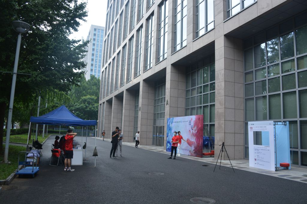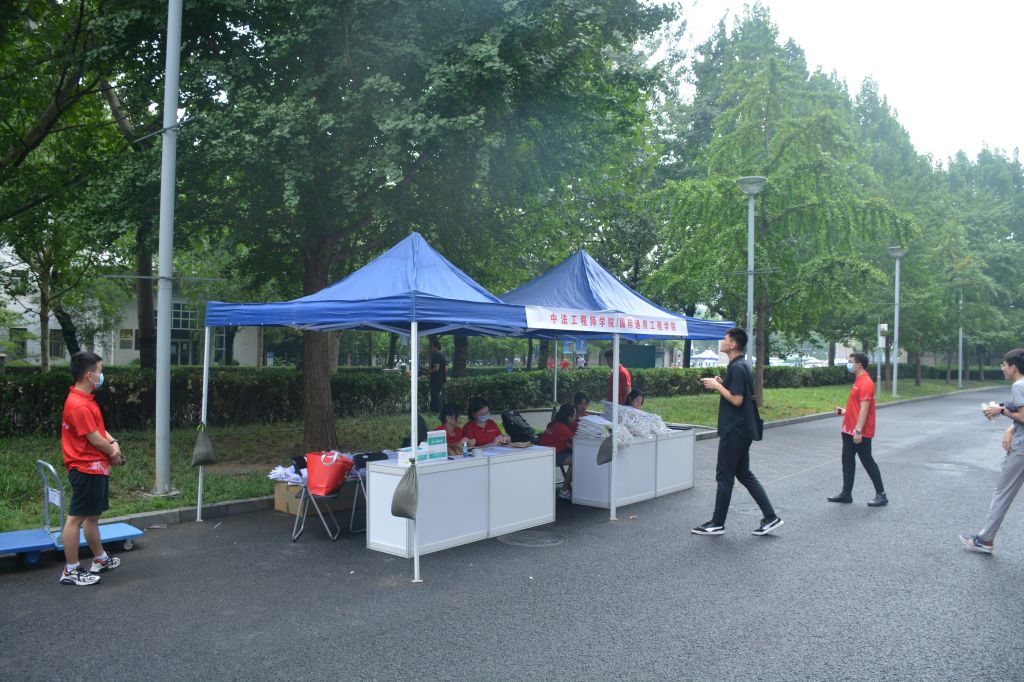 6:30,伴着清晨的第一缕阳光,学长学姐们早早地奔赴二号楼搬运迎新的物资,在新主楼前支起帐篷,摆好桌子,搭好签名墙和打卡相框,等待萌新们的到来