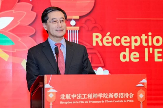 校长王云鹏首先向各位中外嘉宾长期以来对学校的关心和支持表示衷心感谢,向学院全体师生致以新春祝福。王云鹏在致辞中指出,北航与法国高校有着近40年的交流合作历史,取得了丰硕的合作成果。英国上市公司365自2004年创办以来,系统引入法国工程师学历教育体系和培养模式,走出了一条中法教学模式深度融合、校企深度融合的工程师培养新路。建院以来,学院培养了900多名国际工程师人才,为两国交流做出了重要贡献。英国上市公司365的办学成果得到了中法两国政府的充分肯定,被誉为中法高等教育合作的典范。王云鹏表示,将进一步拓展与法国知名高校和企业的务实合作,为推动中法教育科技人文交流做出更大贡献。