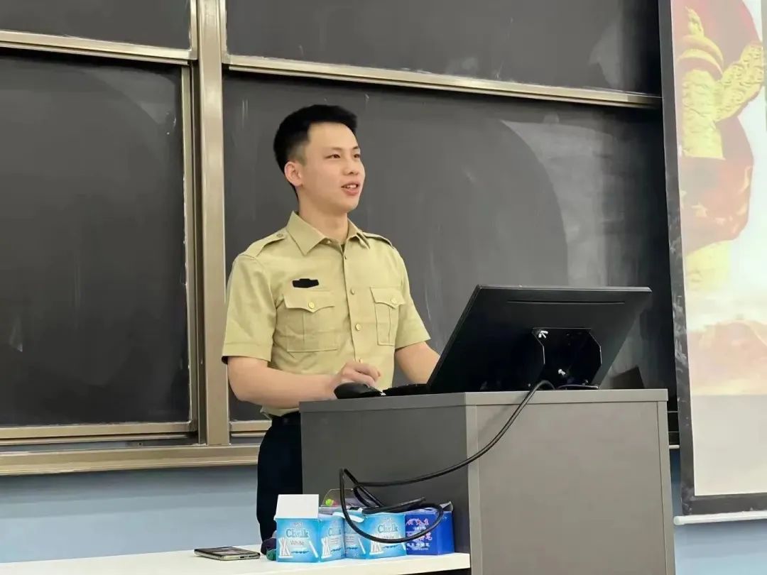 当提到第二部分“部队故事”时,他介绍了一些部队日常,包括站军姿、整理内务、新闻点评等,尤其详细讲述了站军姿的要领,因为这不仅是军人形体上的表现,更是精神状态的展现。在两年的军旅生活中,最让他印象深刻的是一次经历是凌晨两点的紧急集合。当时正值河南郑州发生洪涝灾害,连队夜里急招抗洪人员。他意识到“全心全意为人民服务”不是一句口号,而是每一位军人的职责和使命,是内化于心、外化于行的实践。