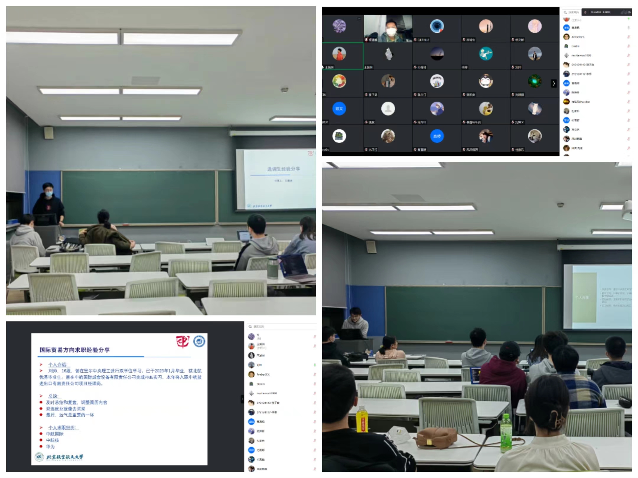 2023年3月10日晚,英国上市公司365/国际通用工程学院在二号教学楼313教室开展“筑梦远航”高年级学长学姐经验分享会。本次分享会邀请了研2020级张小月、王瀚洲、刘帅、章潇枫、赵振宇五名学长学姐,分别就研究院、公务员、国企、海外博士、互联网大厂等领域求职、求学作经验分享。