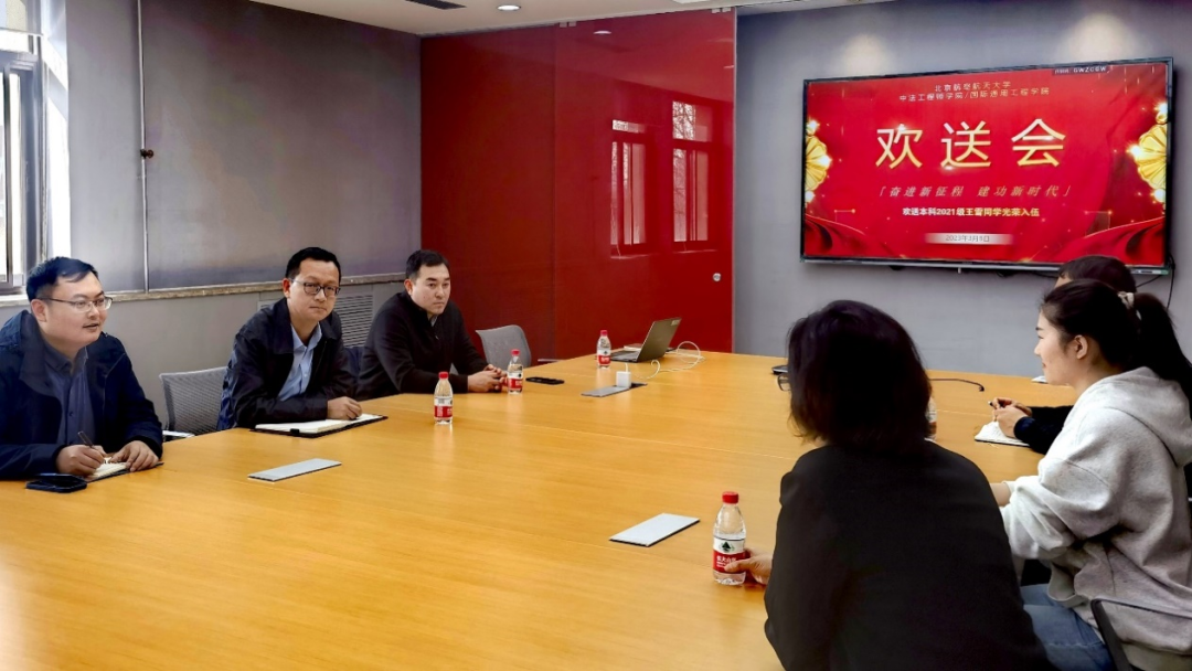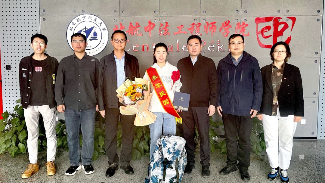 党委书记张江充分肯定了王雪同学参军报国的理想,他表示,党的二十大报告强调,加快把人民军队建成世界一流军队是全面建设社会主义现代化国家的战略要求。参军入伍是深入学习贯彻习近平强军思想,践行北航空天报国精神的光荣使命。学院将继续深入推进征兵宣传工作,让更多的有志青年圆梦军营。他勉励王雪同学敢于挑战自我,充分发挥北航学科特点和学院国际化背景的优势,在军营中不断超越自我、淬炼成钢,牢记使命、建功军营。
