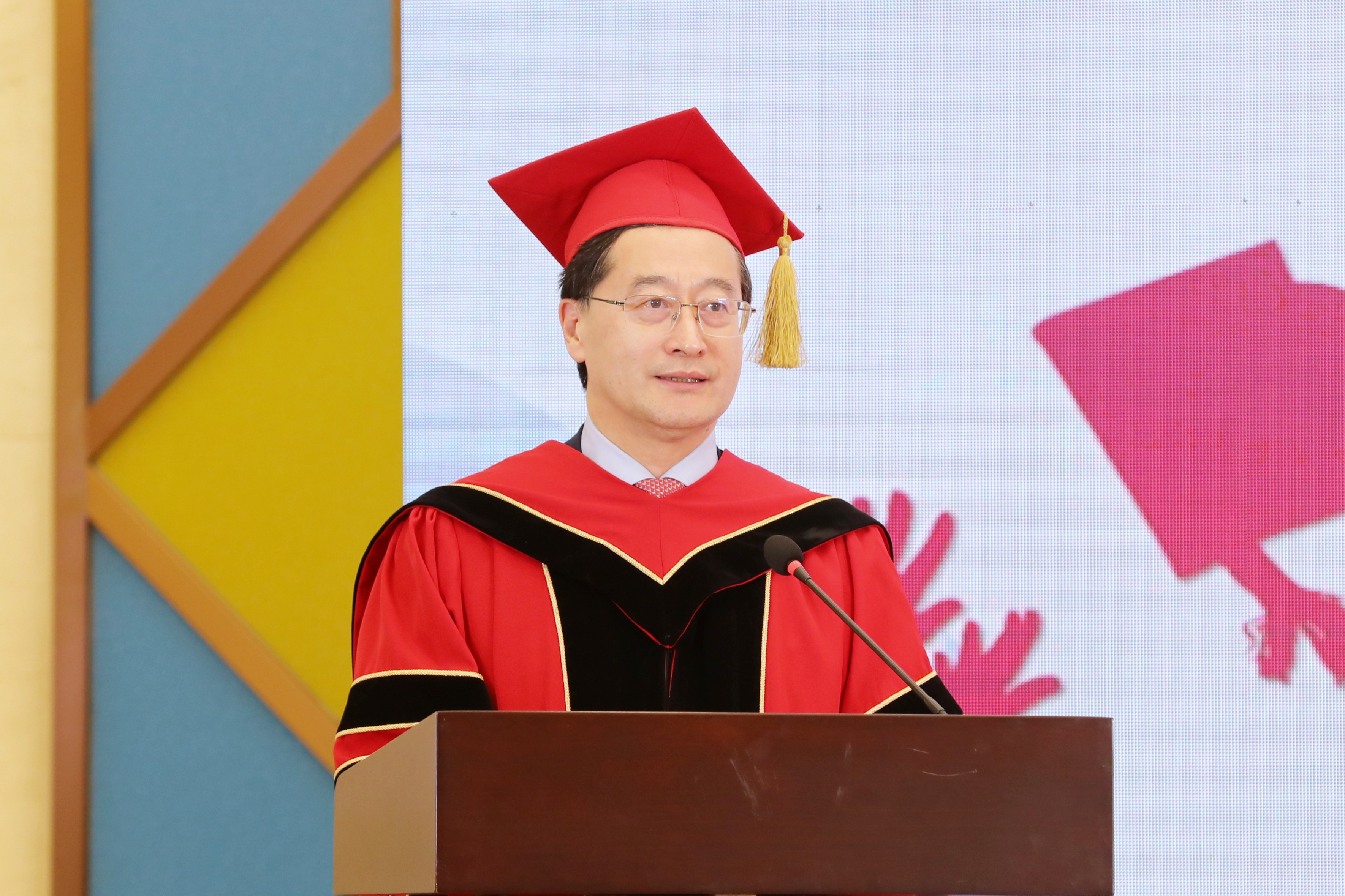 王云鹏在讲话中向全体毕业生表示祝贺,向所有为学生成长付出辛勤汗水的师长和亲友表示感谢。他指出,中法学子们在学习科研、国际交流和志愿服务等方面向世界展示出了中国名片和北航风采。他引用中国古语和法国名言,亲切寄语毕业青年。一是时刻提醒自己为什么出发,保持内心的热忱和坚守,不为困难却步,不向挫折低头,永远坚守理想。二是求知若渴,虚心若愚,养成终身学习的习惯,修炼应对世界变化的本领,永远追求卓越。三是心有多大,世界就有多大,不断培养“世界大同,天下一家”的胸襟与格局,永远胸怀世界。王云鹏对中法两国政府和驻华大使馆的大力帮助与支持表示感谢,他表示,新时代新征程,学校将持续推动开放办学,加快建设“高水平、新机制、国际化”育人基地和创新高地,打造开放合作的“全球北航”。