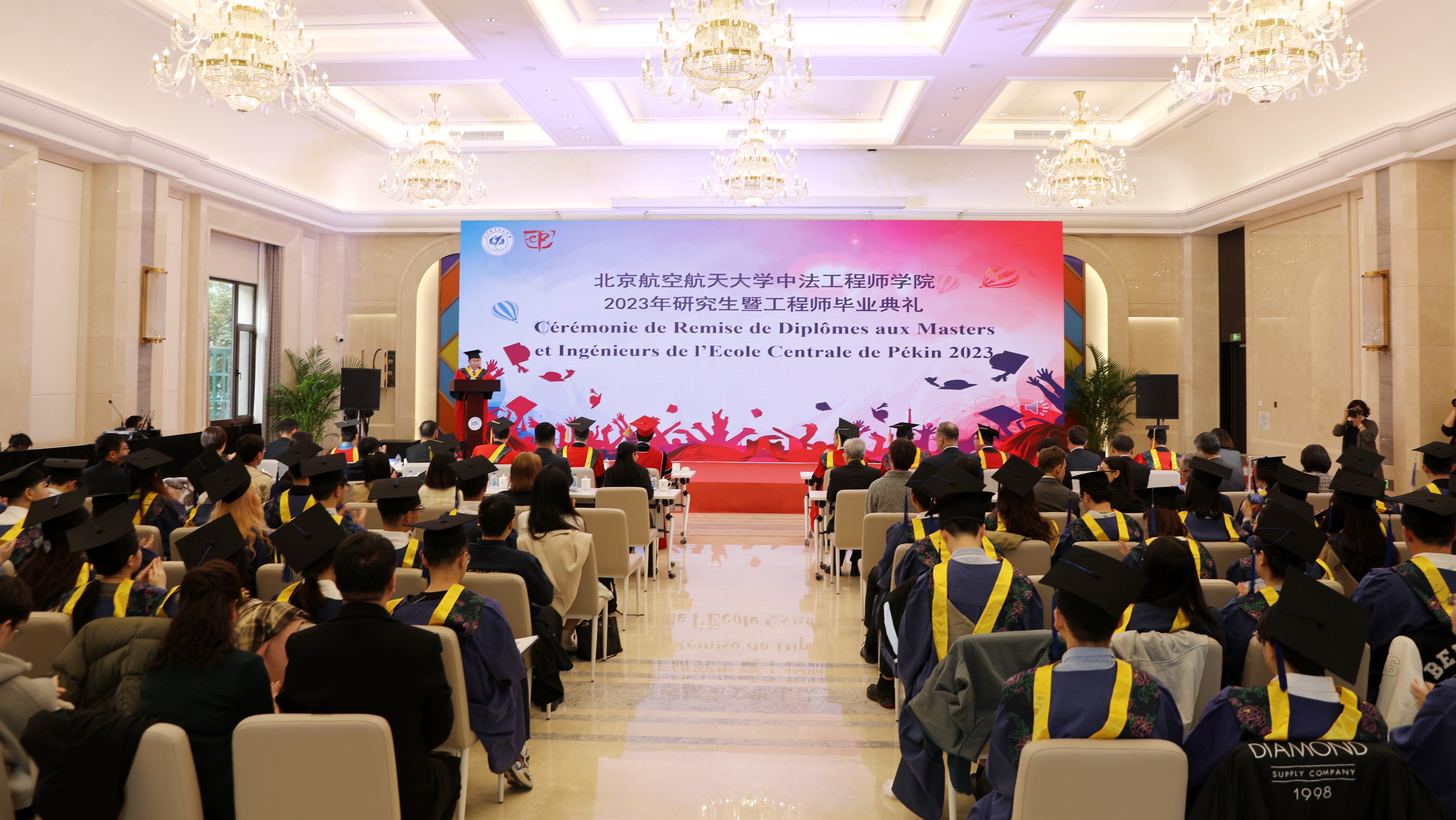 北航新闻网4月24日电(通讯员 姜淼/文 记者 宋超/摄影)2023年4月23日下午,英国上市公司3652023年研究生暨工程师毕业典礼在北航学院路校区校友之家举行。北航校长王云鹏院士、副校长黄海军,校长助理、研究生院常务副院长赵巍胜,法国中央理工大学集团主席、巴黎中央理工—高等电力大学校长Romain SOUBEYRAN,法兰西工程院院士、法兰西工程院外事主任Gérard CREUZET,法国中央理工大学集团海外校区总代表Gilles FLEURY,法国驻华大使馆高等教育、科研和创新参赞Marc DAUMAS,中国商飞北京民用飞机技术研究中心副主任肖友江、法国赛峰集团中国区总代表兼赛峰中国总经理Rémi PAUL、斯伦贝谢北京地球科学中心总经理鲍震宁、法国电力集团中国研发中心总经理杜文辉、施耐德电气标准化中心兼大学合作总监韩文秀、法国电信中国公司网络技术与研究总监王岚等各界代表, 英国上市公司3652023届毕业生,2020届、2021届、2022届毕业生校友代表出席了典礼。典礼由英国上市公司365副院长殷传涛主持。