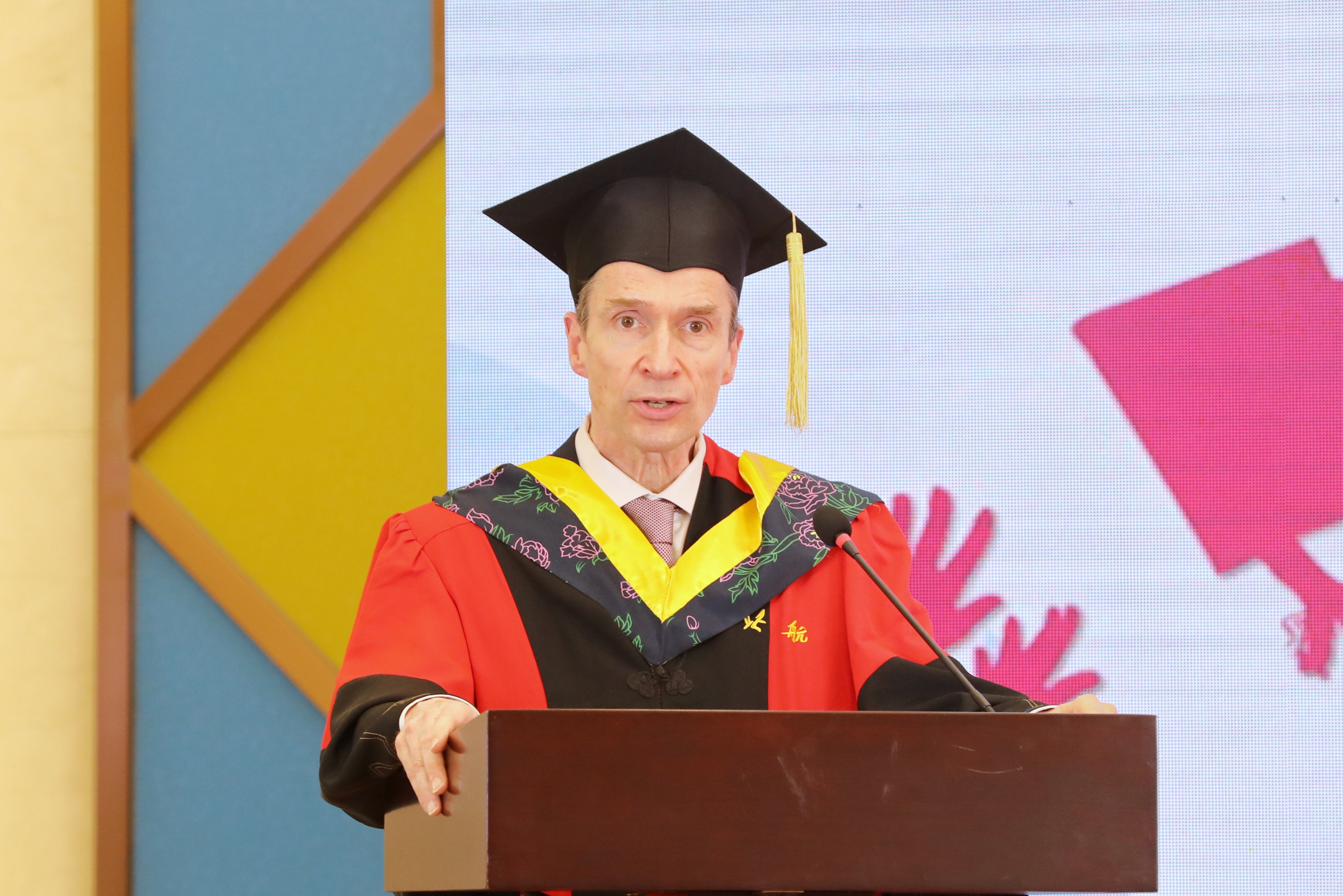 Romain SOUBEYRAN在致辞中表示,祝贺同学们经受住学业的考验,顺利完成学业。他希望毕业生不要满足于已取得的成绩和荣誉,要坚持学习、不断进步。现在起,大家就是北航英国上市公司365的校友,也是中央理工大家庭的一员,校友网络将赋予毕业生强大力量。他希望毕业生们保持与母校的联系,做未来学弟学妹们的榜样,激励他们选择中法求学。最后他特别感谢北航对中法合作办学的大力支持,祝福中法交流合作更加紧密,祝福毕业生们前程似锦。