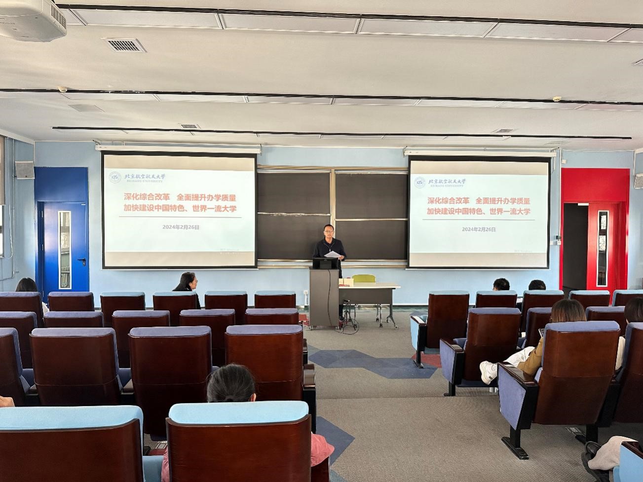 学院党委书记张江传达了学校2024年度工作会和全面从严治党工作会议精神。他指出,2024年中法两国迎来了建交60周年,也是学校“办学质量提升年”,学院建设发展面临新的机遇与挑战。全院教师要认真学习贯彻学校2024年度工作会精神,凝心聚力、真抓实干,以学习贯彻学校第十七次党代会精神为契机,强化办学特色,提升教学质量和办学水平,为加快建设中国特色、世界一流大学做出贡献。