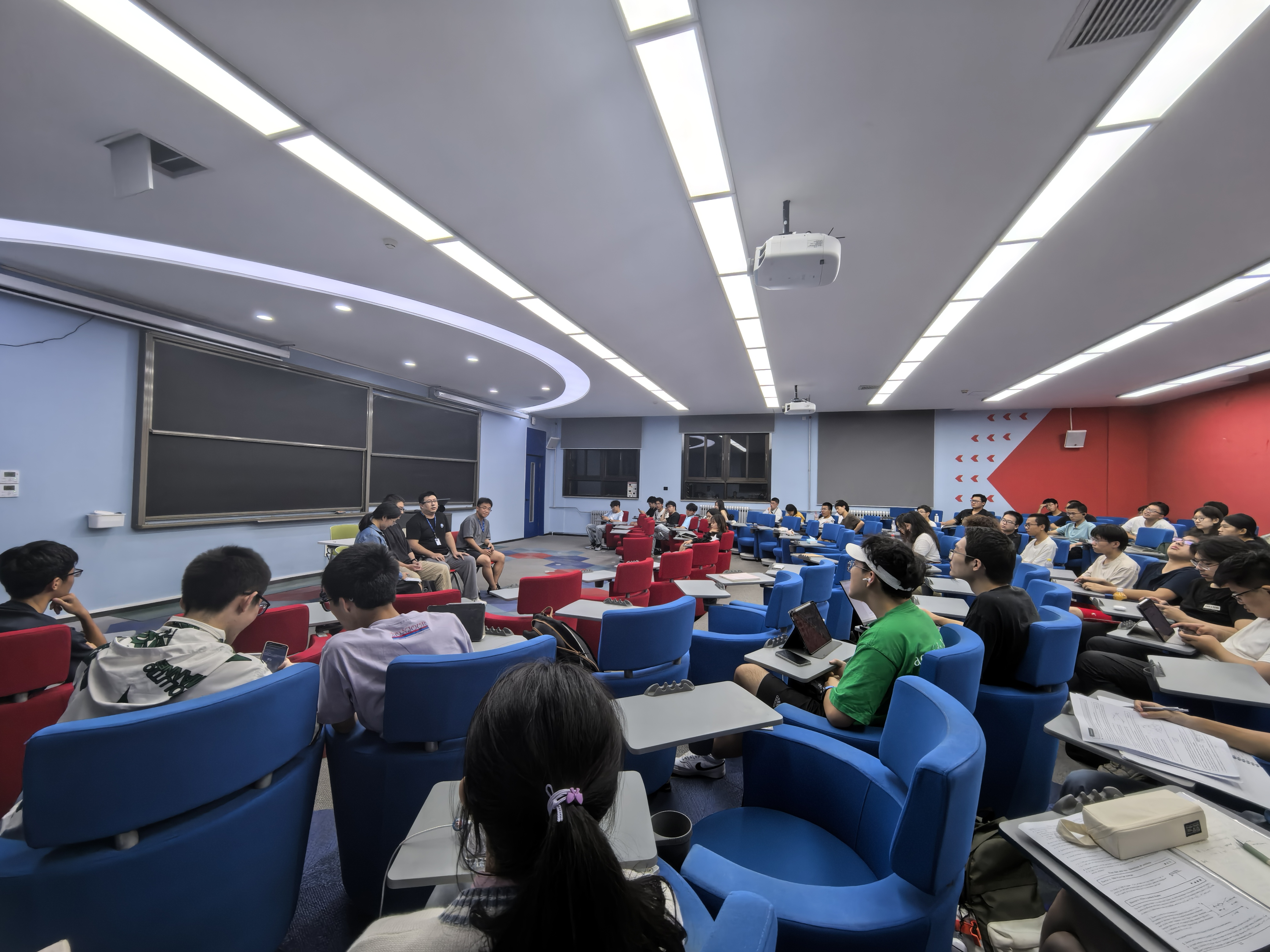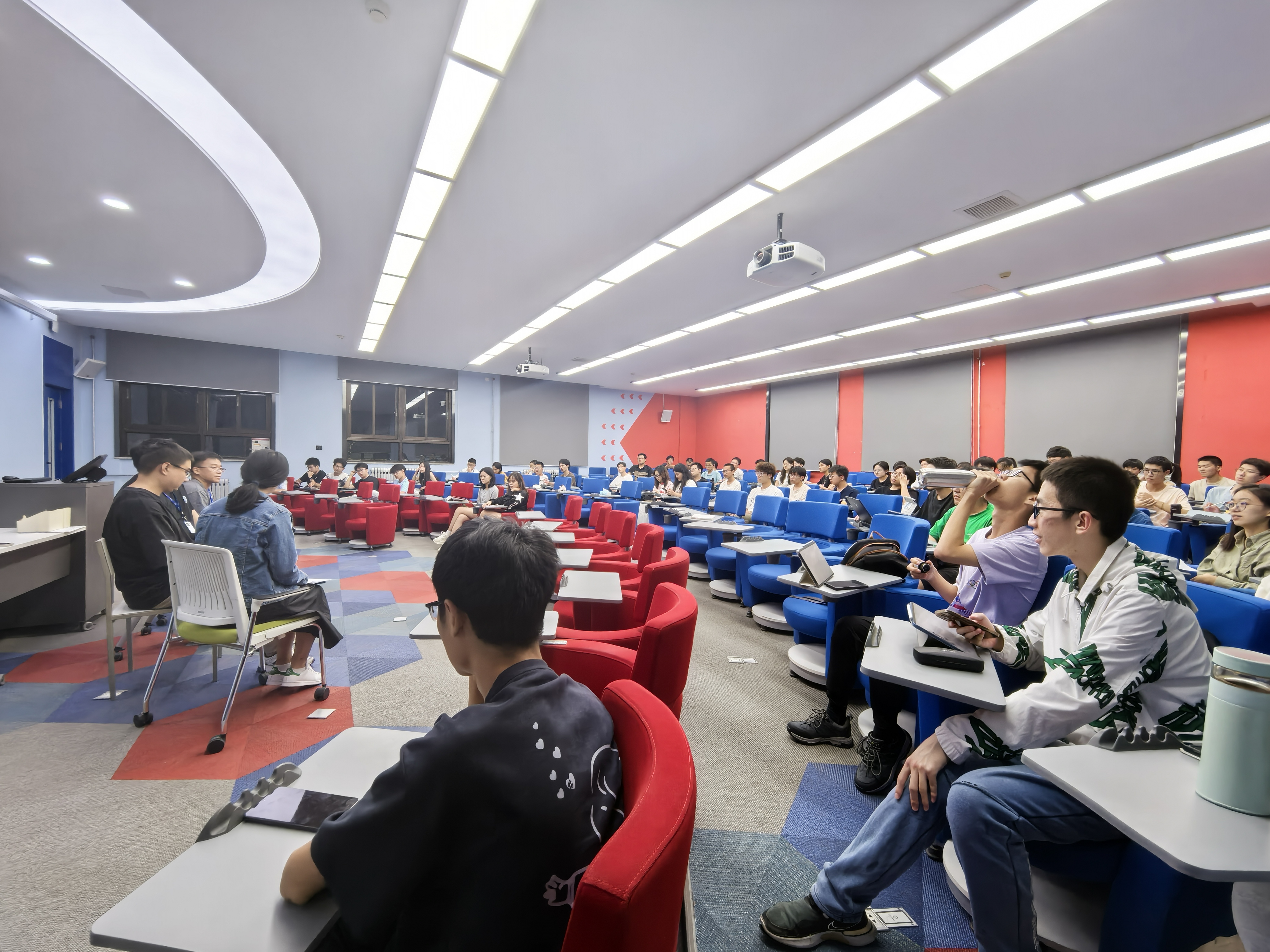 校友自主分享结束后,参与讲座的学生踊跃提问。校友对大家的疑问,例如学习强度、工作所用语言、自学计算机、实习等问题一一作出解答。另外,校友们与部分学生还进行了一对一深入交流,讲座在欢乐的氛围中落幕。