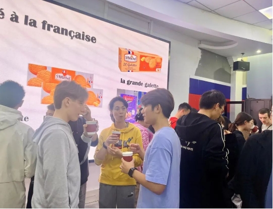 同学们迫不及待地分享着法国美食。对于中国学生来讲,这些零食每一口都是一次全新的探索,大家惊喜的眼神流露出对法国口味的认可。而法国同学们在品尝过后,也纷纷竖起大拇指,用不太熟练的中文调侃道“这就是家乡的味道!”