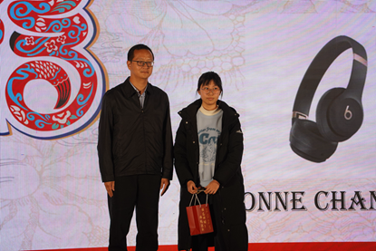 党委书记张江在现场抽取出了特等奖的得主,希望一副耳机能一直陪伴着她的学习之路。