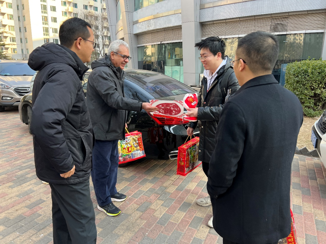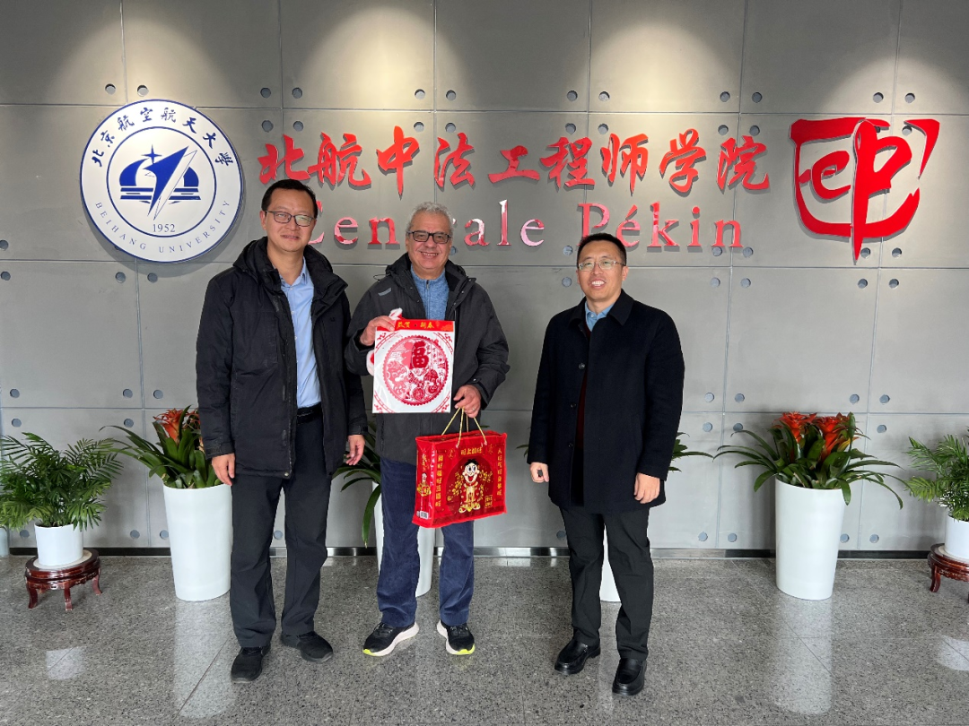 学院领导还专程看望在校工作的法籍教授马克德宏,感谢他为学院发展所作出的贡献,并送上新春的美好祝愿。党委书记张江和院长耿立升特意向今年在中国过节的法方院长布卡麦送上最具中国特色的新春福字与节日问候,也充分表达了中法合作的深厚情谊。