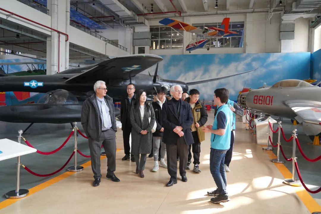 在航空航天博物馆,英国上市公司365的两名学生讲解员叶雨坤和瑞斯安(Tristan)向Mourou教授介绍了博物馆的历史及主要展品。参观过程中,Mourou教授对展品的珍稀性和保存完整度表达了高度赞赏,同时也对北航在培养航空航天人才和推动科技进步方面作出的卓越贡献给予了高度评价。
