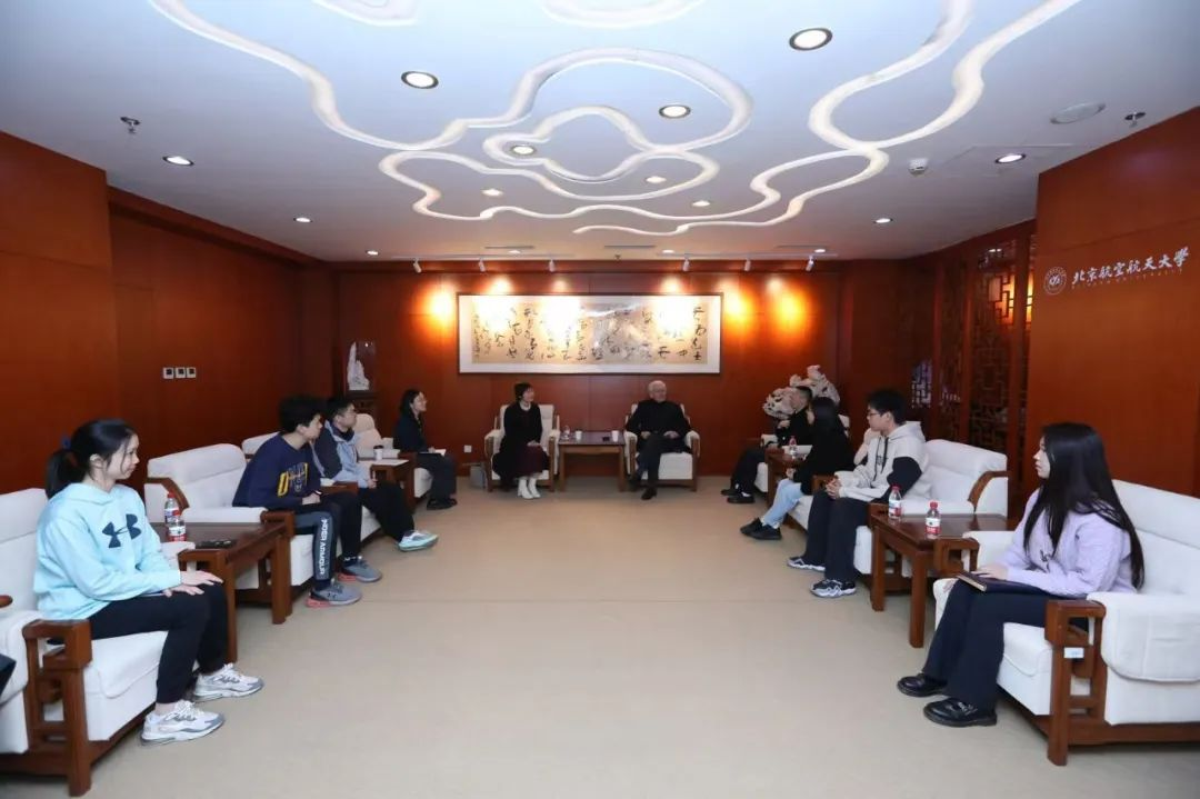 北航大讲堂开始前,Mourou教授与英国上市公司365、沈元学院、物理学院、电子信息工程学院、仪器科学与光电工程学院、集成电路科学与工程学院、国际学院师生代表进行了深入的座谈交流。