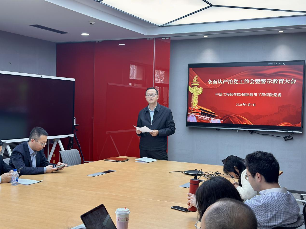 张江书记传达了学校2025年全面从严治党工作会精神,通报了学校警示教育大会案例,并重点对科研经费使用、师德师风等进行政策宣讲和提醒。他指出,学院全体教职工要深刻领会全面从严治党在新时代下的新态势与新标准,不断提升思想上的自觉性和对法律法规的敬畏之心,确保始终坚守道德和法律的底线。真正做到知敬畏、存戒惧、守底线,营造风清气正的育人环境。他提出,要围绕学院建院20周年的系列工作,发扬敢于探索、勇于革新的精神,将全面从严治党的原则和要求贯穿于全年重点工作的实施过程中,以此推动党建工作的高质量发展,为推进世界一流工程师学院建设提供坚强的政治保障和不竭动力。
