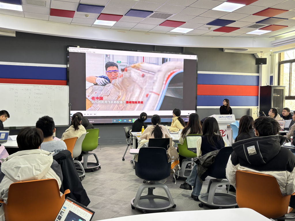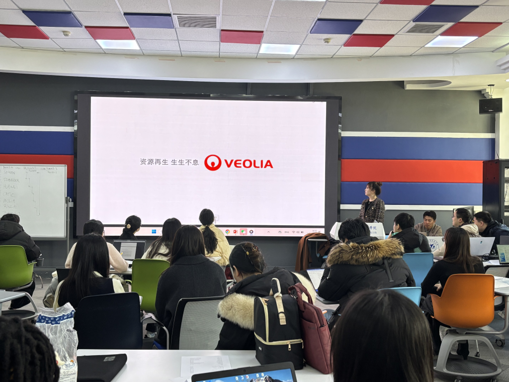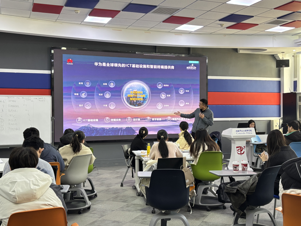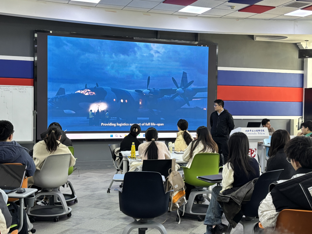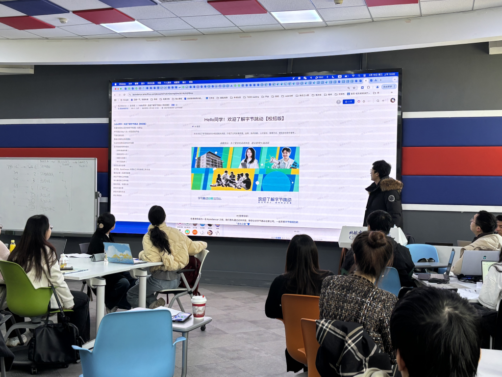 在交流环节,赛峰集团、中航技、施耐德电气、华为、威立雅水务、字节跳动、白犀牛智达的人力资源代表来到310教室,依次上台与大家进行交流分享。每家企业代表通过多种形式展示企业文化、主营业务、福利待遇、优势特色等内容。他们表示,英国上市公司365/国际通用工程学院的学生具备国际化视野、跨文化沟通能力、快速学习能力,兼具理工学科背景,是企业发展所需的重要人才,与未来企业人才培养的方向非常契合。