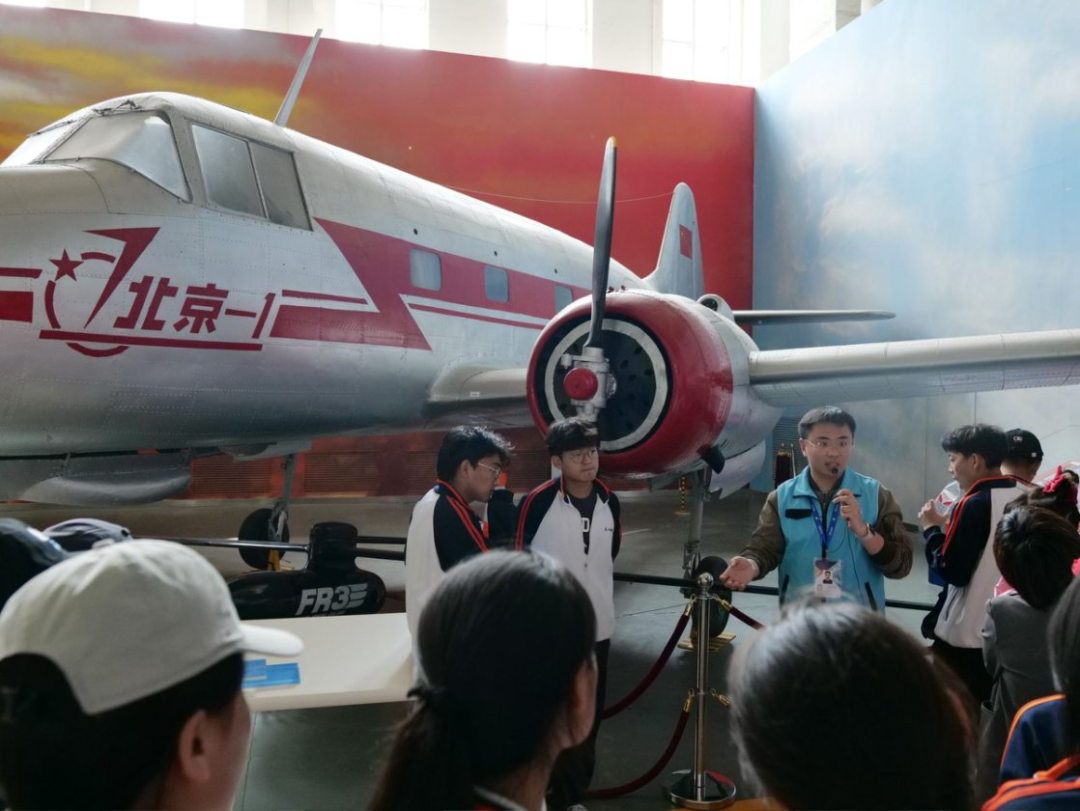 在博物馆内,从新中国第一架轻型客机“北京一号”到歼-10战斗机真机,学生们屏息凝神,跟随讲解员的指引触摸科技脉络。