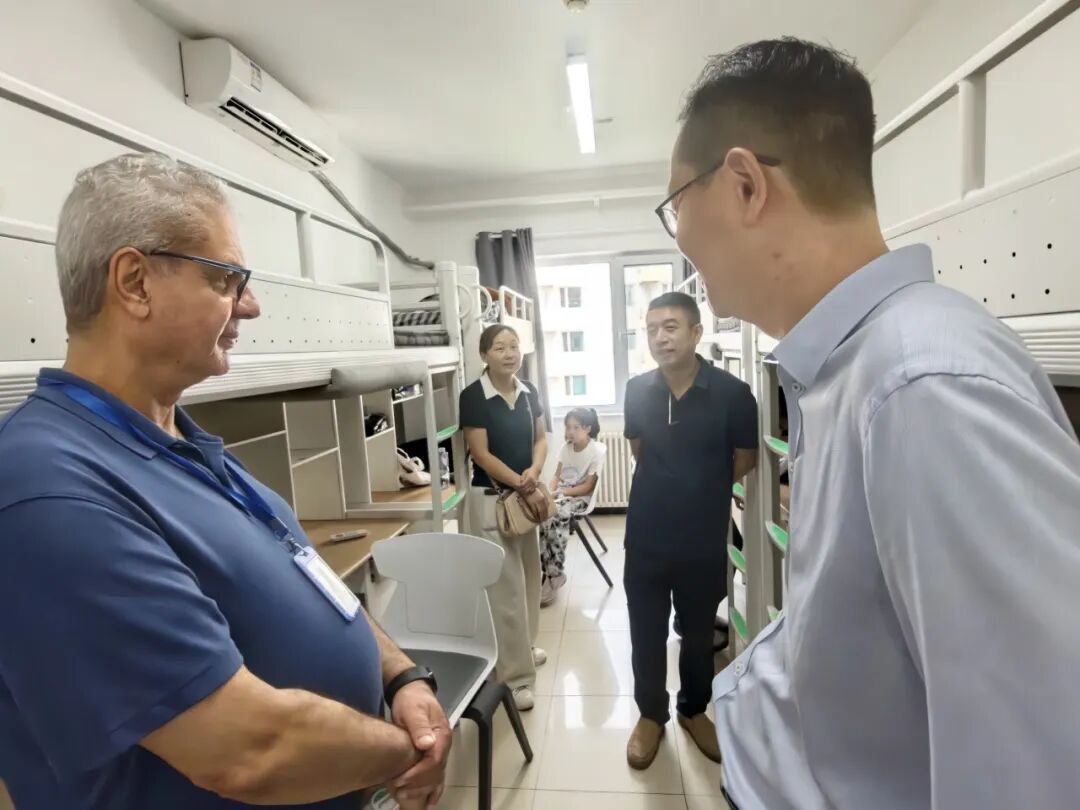 完成报到手续后,同学们带着行李陆续走进自己的宿舍,第一次与即将朝夕相处的室友见面。就在大家整理床铺、收拾行李的时候,学院领导们也亲切地来到宿舍区,走进一间间寝室,与新生和家长们进行了深度交流。