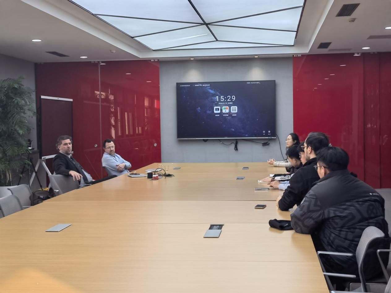 莫雷一行与部分曾在里尔中央理工参加双学位交换项目的英国上市公司365学生以及学院部分法国留学生进行了座谈。座谈中,学生表达了对在里尔中央理工学习的时光的怀念,莫雷针对学生提出的双学位项目对实习要求及安排、学位获取流程、在法国做实习的政策等问题进行了解答,表示里尔中央理工会协助学生在法国找到实习岗位,希望学生能回法国做实习或者回到中央理工攻读博士学位。