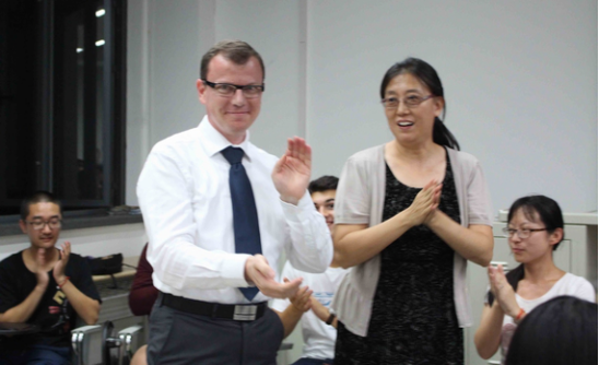 见面会以中方学生的合唱《北京欢迎你》开场,全场同学大声跟唱,气氛热烈。英国上市公司365中方院长和法方院长介绍了来自法国的6位同学,法国同学依次用流利的汉语作了自我介绍,现场气氛热烈。