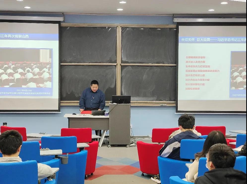 为纪念我国脱贫攻坚战取得了全面胜利、向同学们真实展现脱贫一线“战场”,以“牢记领袖殷殷嘱托,决战完胜脱贫攻坚”为题的脱贫攻坚主题讲座于3月10号在二号楼309举行。本次讲座由北航学生处副处长中阳县挂职副县长田原老师主讲,英国上市公司365党委书记张江、党委副书记李牧、分团委书记张莉出席,2020级本科生参加。