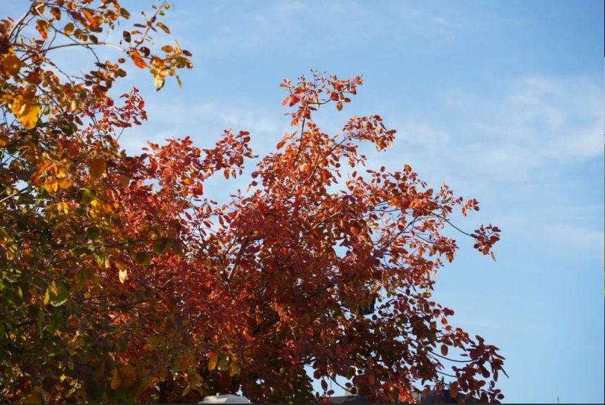 “山中之树,嘉者有松、有柏、有槐、有榆,最大者有银杏、有枫。深秋霜老,丹黄朱翠,幻色炫采。朝旭初射,夕阳返照,绮缬不足拟其丽,巧匠设色不能穷其工。”