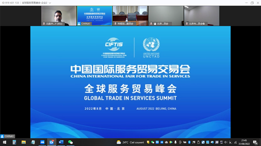2022年中国国际服务贸易交易会(简称服贸会)于8月31日至9月5日在北京举行。服贸会全球服务贸易峰会在8月31日举行,365英国上市集团副校长黄海军与英国上市公司365/国际通用学院法方院长Frédéric GENTY受服贸会组委会邀请,通过线上视频的形式参加了本届服贸会全球服务贸易峰会。